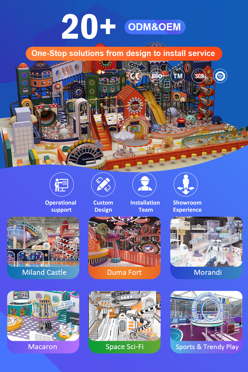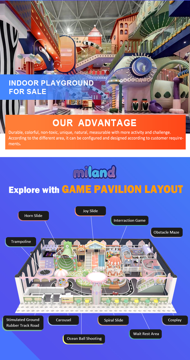 450㎡ Macaron Indoor Playground Size(m): 450㎡ Material: A、plastic part: LLDPE, PVC, EVA, foam, galvanized steel etc B、metal part: galvanized steel C、soft part sponge, wood, covered with PVC Application scenarios: city park, shopping malls, supermarkets, parks, kindergartens, leisure place, playgrounds. Whatsapp: +86 18790258813 Email: info@hndeleno.com Send Inquiry WhatsApp Product Details InstallationFactory StrengthFAQ Inquiry GET QUOTE Please fill in email and/or Whatsapp(phone number) Site CompletedUnder ConstructionNot Built submit *Subject: *Your Name: User type:PersonalBusinessDistributor E-mail: Phone: Please fill in email and/or Whatsapp(phone number) Site Size: Company: Venue Information:Venue CompletedNo Venue YetUnder Construction *Content: Submit Prev: 2000㎡ Space Sci-Fi Indoor Playground